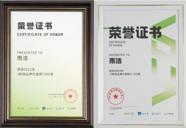 品牌榮譽|雨潔品牌連續兩年榮膺新銳品牌100強